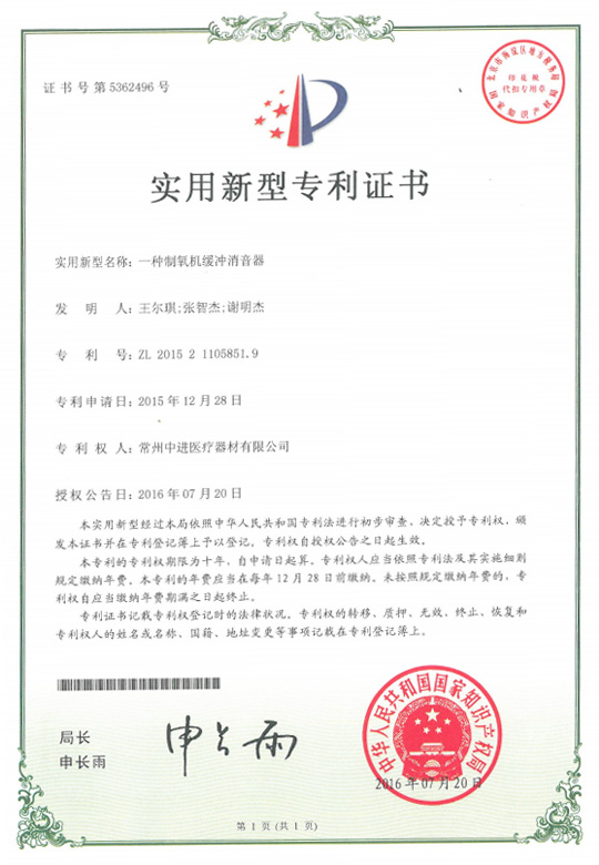 氧氣收集裝置通過減壓閥将制取的氧氣壓力調節至規定的安全壓力範圍後輸出,通常爲0.06MPa土10%。通過流量調節裝置進行氧氣流量的調節,可在1升~5升之間無級調節。